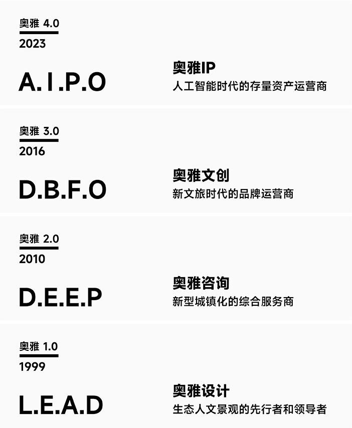 經(jīng)過多年的戰(zhàn)略布局與發(fā)展,在李方悅女士的推動下,奧雅股份從一家設(shè)計企業(yè)成功轉(zhuǎn)型成為新銳的輕資產(chǎn)文旅開發(fā)運(yùn)營企業(yè)。奧雅以“創(chuàng)造更美好的人居環(huán)境”“讓空間賦予生命”為使命,以雙輪驅(qū)動+雙引擎為發(fā)展格局,即創(chuàng)意設(shè)計+親子文旅雙輪驅(qū)動、AIGC+IP雙引擎;經(jīng)營業(yè)務(wù)范圍涵蓋創(chuàng)意設(shè)計、親子文旅、數(shù)字科技等領(lǐng)域,為城市更新、鄉(xiāng)村振興、文化古城等不同場景提供全程化咨詢與綜合運(yùn)營服務(wù)。在實(shí)現(xiàn)企業(yè)價值和理想的同時,解決當(dāng)代中國的實(shí)際問題與需求,創(chuàng)造具有地域特色、人性化和充滿活力的新舊城市空間和綜合文化旅游項(xiàng)目。